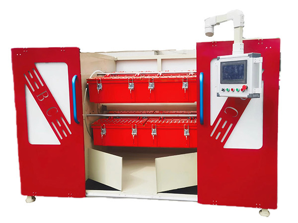 7.不用冶具装夹,省去人工和繁琐的冶具工装设计装夹,直接将产品放入研磨桶内就可溜光,方便快捷,傻瓜式生产。