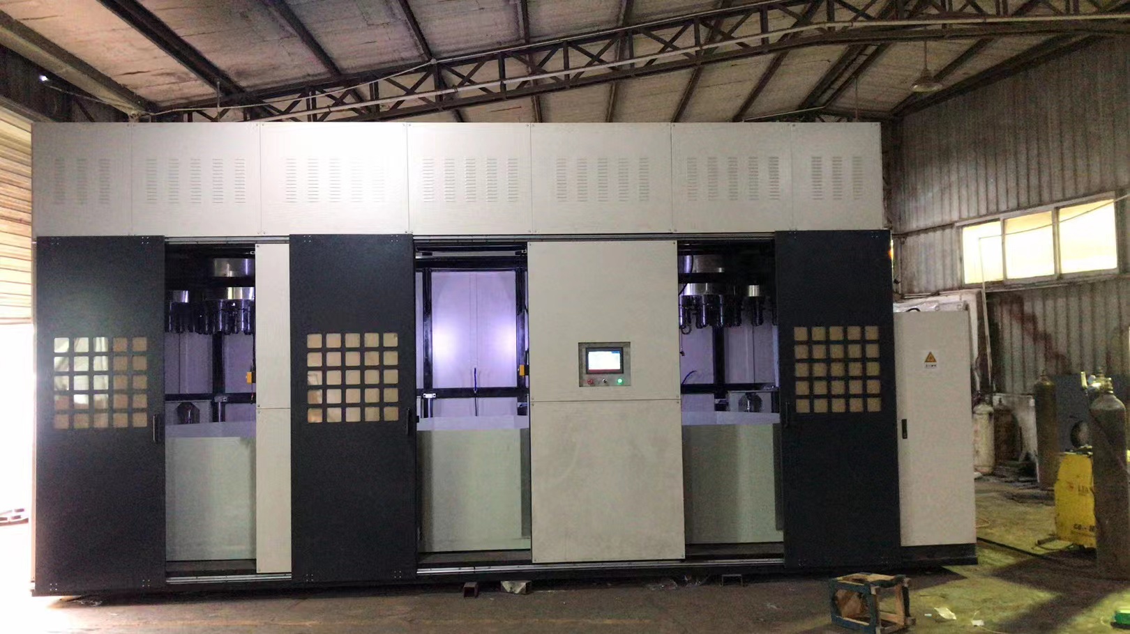 ② 关上安全门,开启自动模式,设备为PLC编程控制系统,触摸 屏方式操作。