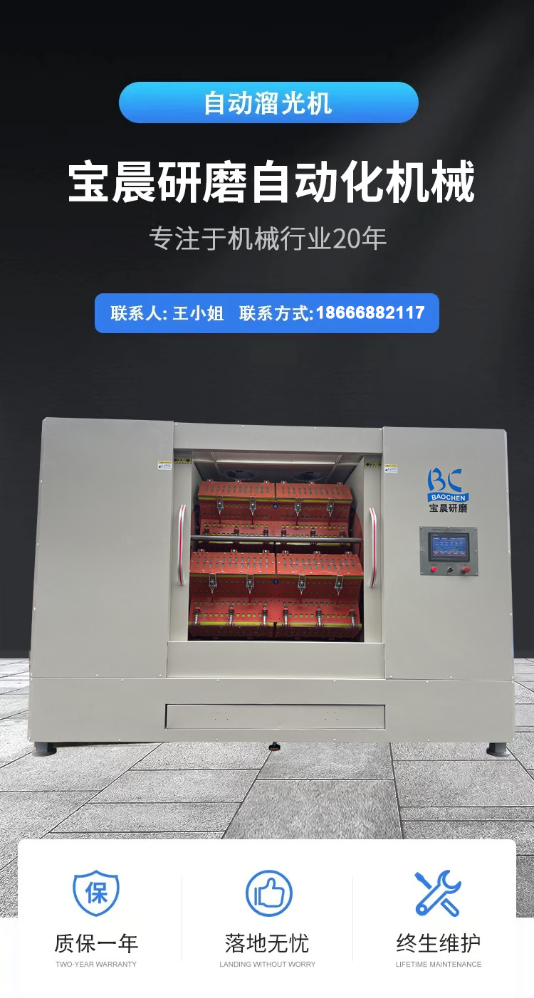 (2)本机采用的是全封闭研磨桶,可根据用户要求制作防碰撞带隔板的内衬研磨桶,特别适用于多品种、异形件的抛光工艺。振动式与流动式机无法加工的零件,利用自动溜光机可达到理想的光亮加工效果。