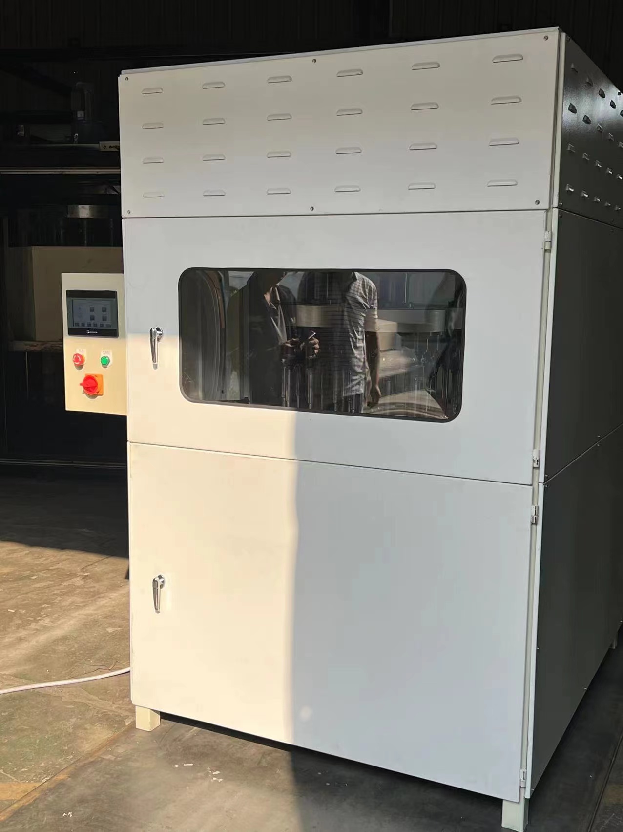 5、 电气柜:由独立的封闭箱体组成。通过面板各指示按钮控制整机工作。